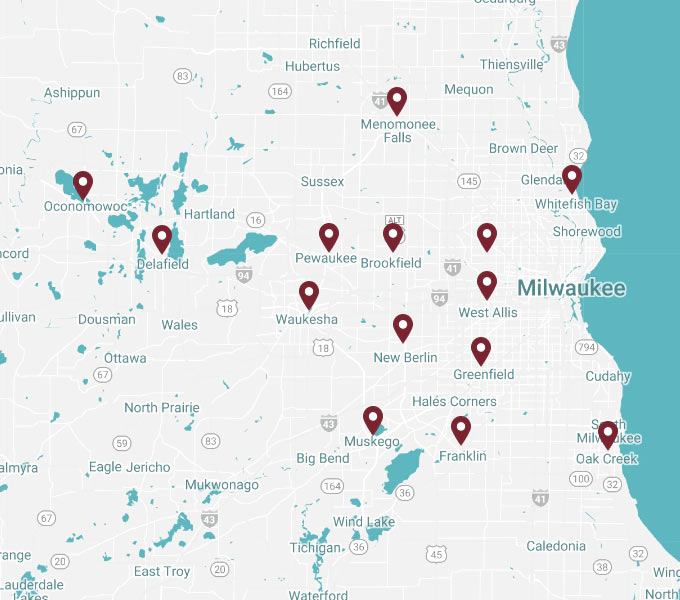 We mainly service Waukesha & Milwaukee counties, including: